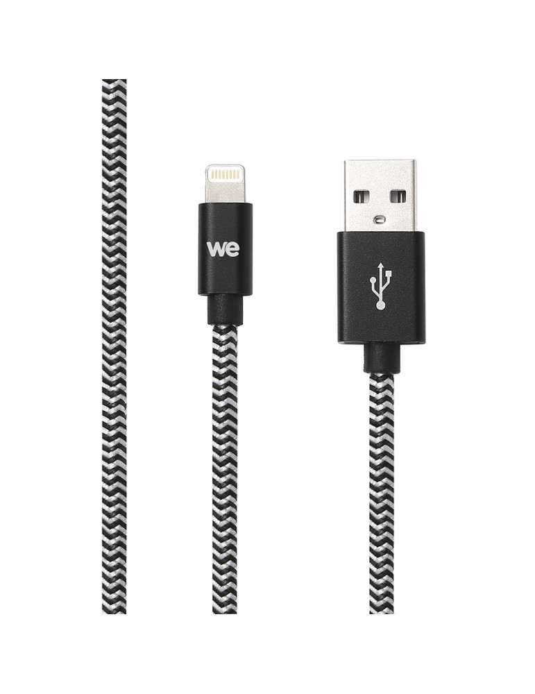 Câble USB-C/Lightning nylon tressé 2m - noir & blanc Charge rapide Connecteurs en métal