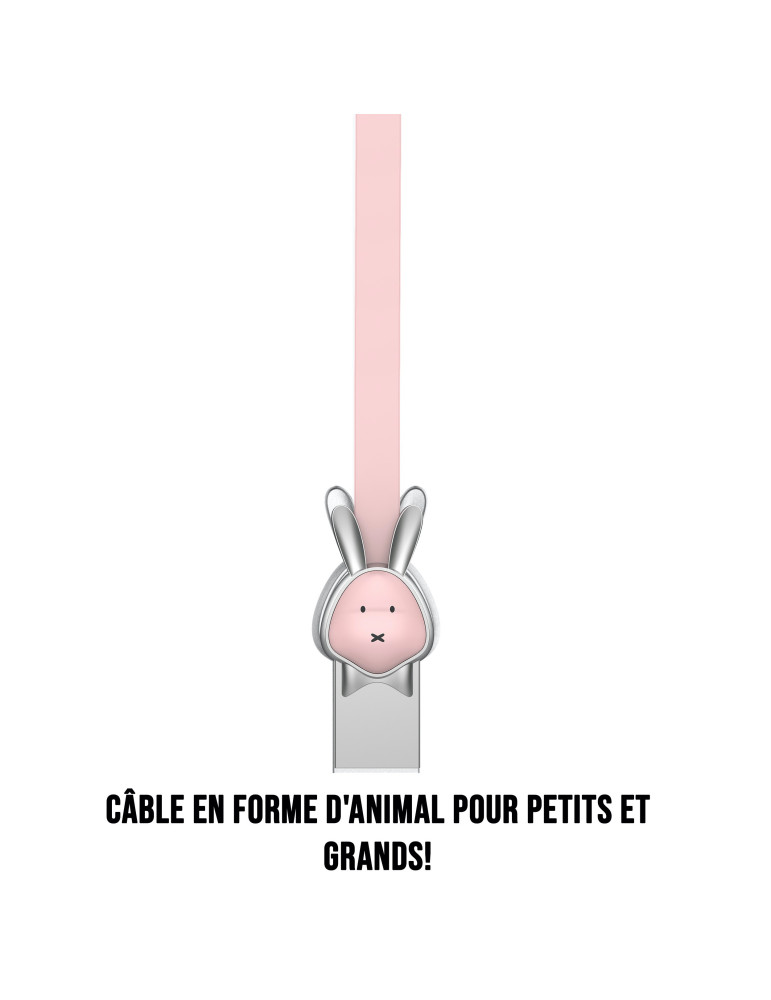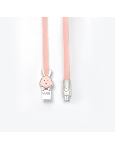 Câble lapin USB/micro USB plat1m rose - Connecteurs en zinc